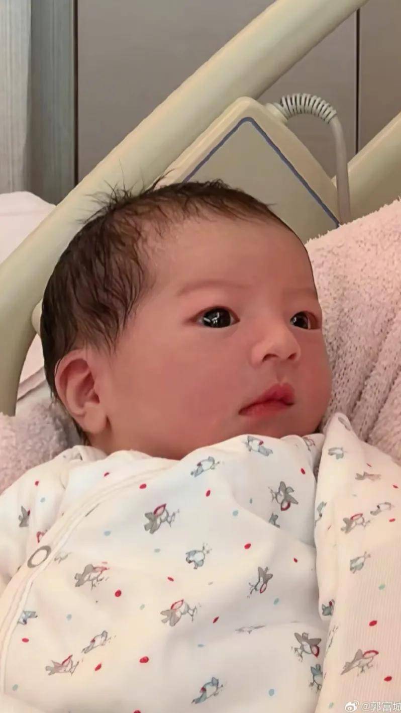 郭富城的三胎女儿皮肤白皙,已然睁开双眼。她虽是单眼皮,却有着一双大眼睛,十分漂亮,嘴巴与方媛如出一辙,堪称美人胚子。