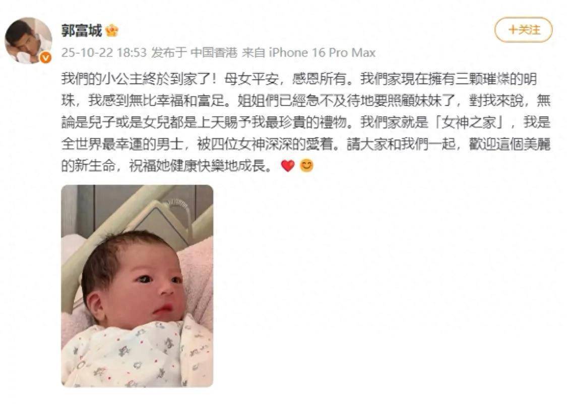 恭喜郭富城再添贴心小棉袄,虽未如他期待得子,但女儿同样美好。正如他所言,他家是“女神之家”,他确实是个幸运之人。